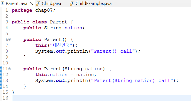 - this로 호출해서 Parent(String name) call이 먼저 출력됨